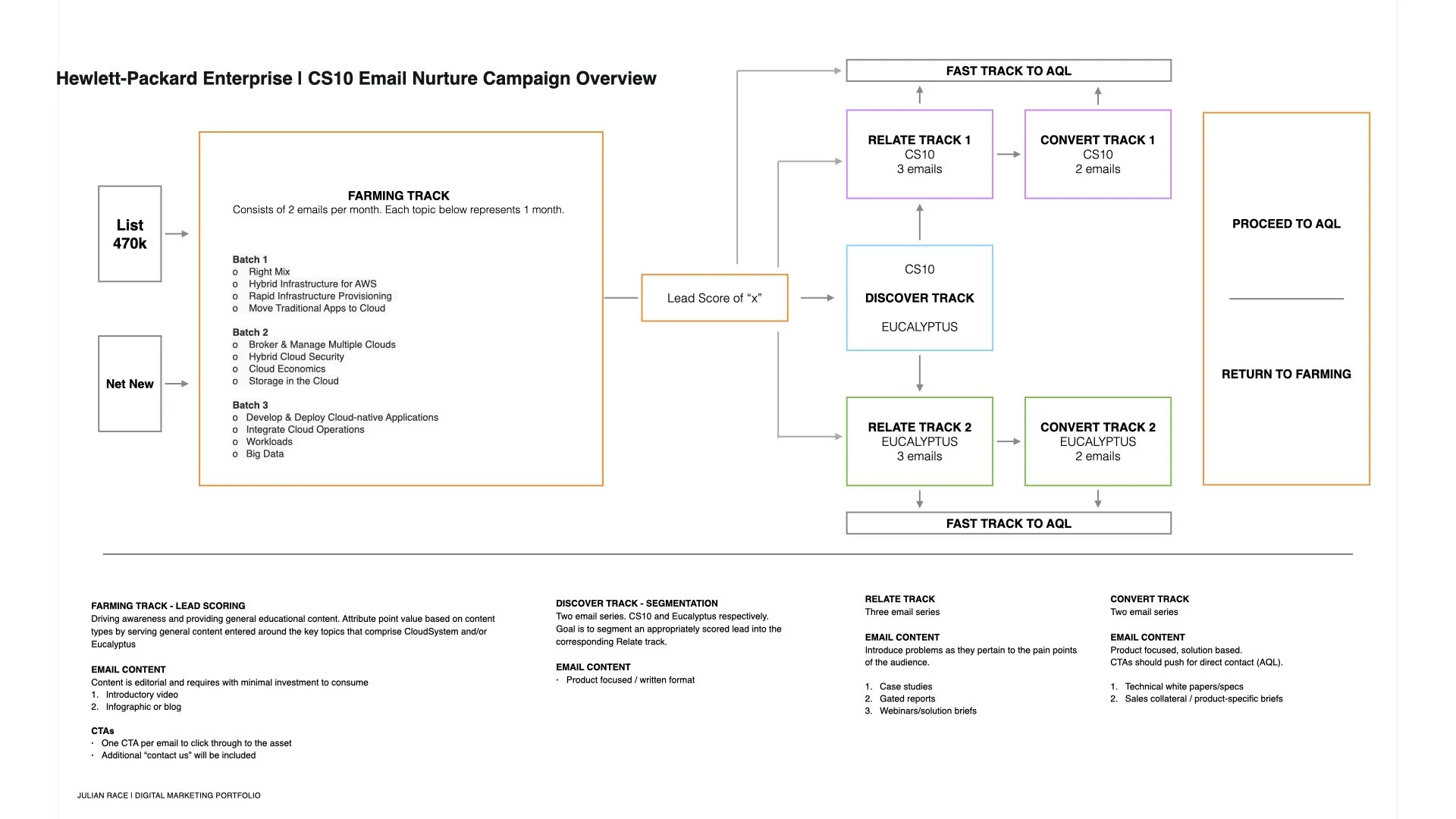 To support the CS10 product launch, we developed a three-stage email nurture program with clearly defined goals: